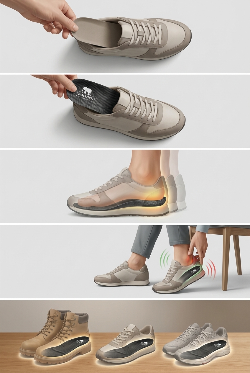 „Wypróbowałem co najmniej dziesięć różnych wkładek, ale dopiero BOLLSEN przyniosło mi ulgę w bólu pięt”.