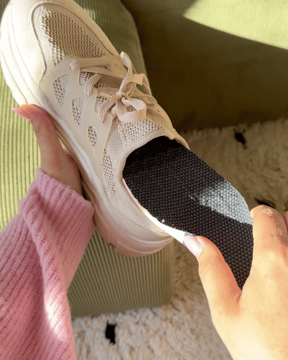 wkładkę Najpierw wyjmij cienką wkładkę z butów. W przeciwnym razie będą one zbyt ciasne.